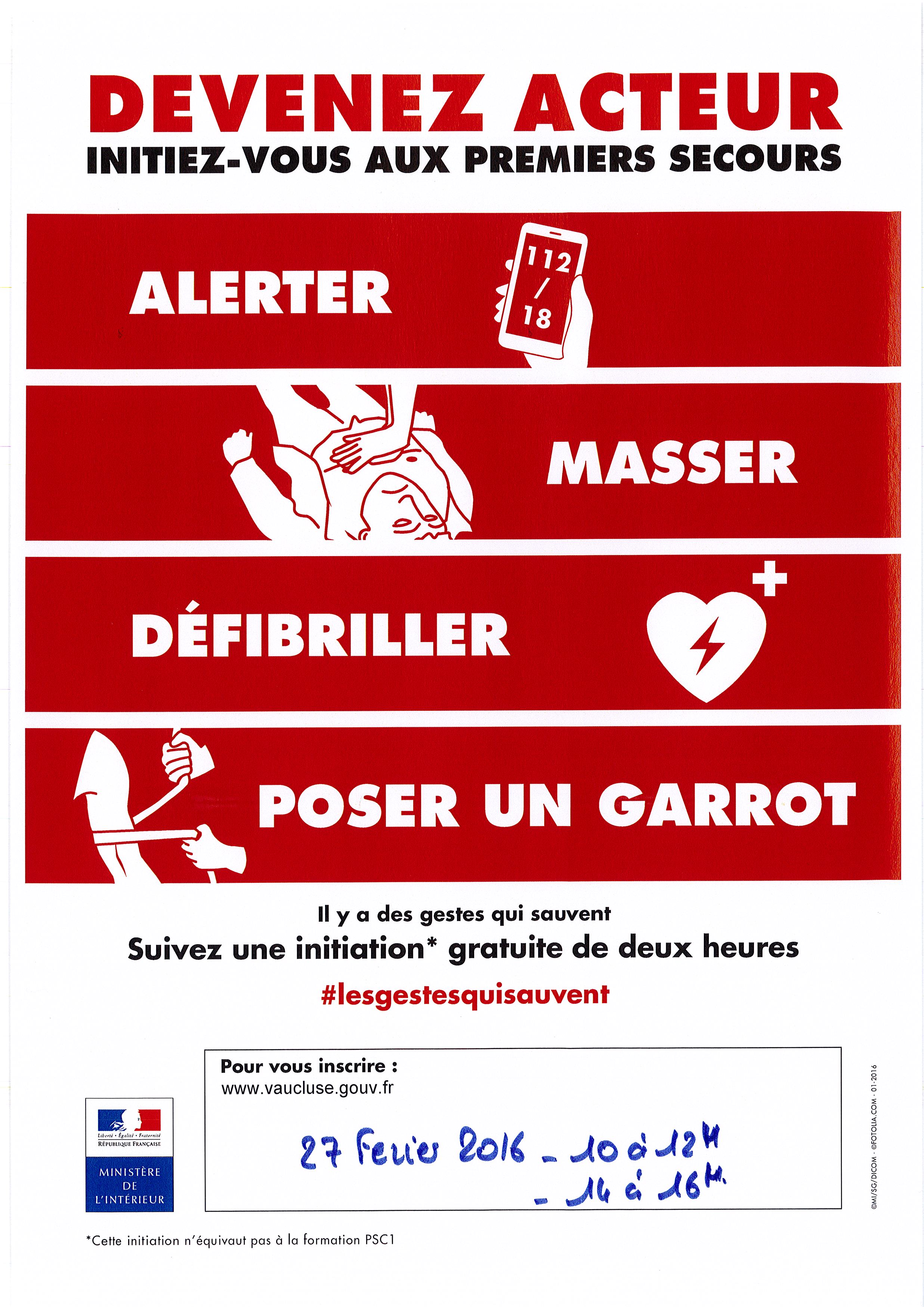 Le 27 février 2016 de 10h à 12h et de 14h à 16.Inscriptions sur www.vaucluse.gouv.fr Voir le fichier Du 5 janvier au 28 février 2016