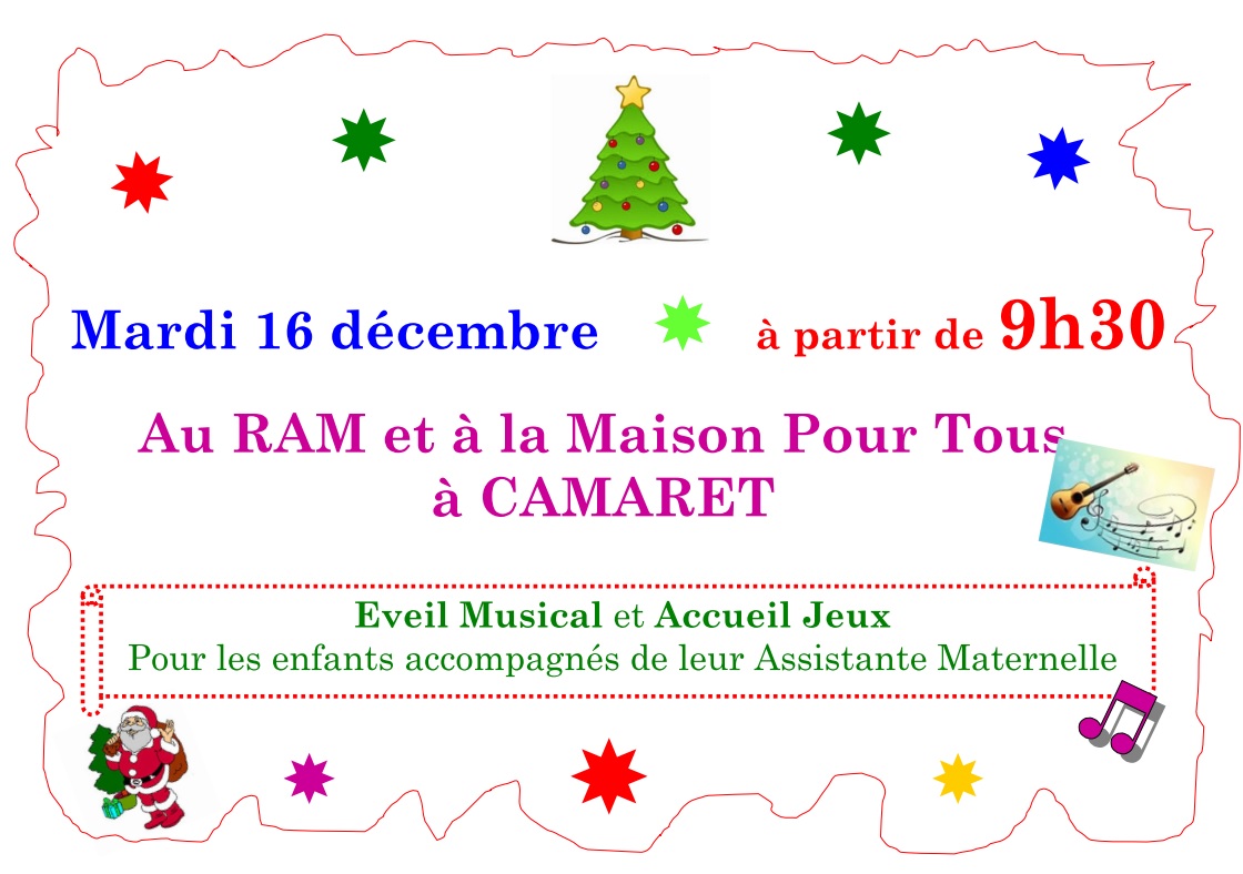 Le mardi 16 décembre à la Maison Pour Tous à partir de 9h30. Réservé aux assistantes maternelles. Voir le fichier 16 décembre 2014