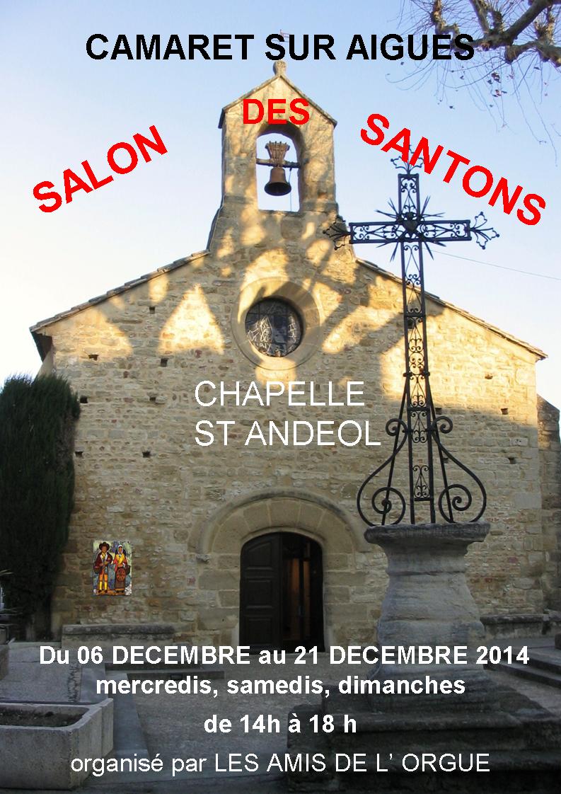 Du samedi 6 décembre au 21 décembre 2014, l'association les Amis de l'orgue vous invite au salon des santons qui se tiendra à la chapelle Saint- Andéol avec 7 exposants santonniers. Comme les années précédentes, les jours d'ouverture sont les mercredis, samedis, et dimanches, de 14h à18h. Nous vous disons à bientot et vous attendons nombreux.